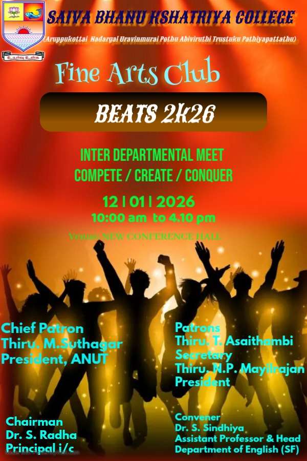 Event Information Location New Conference Hall, SBK College, Aruppukottai Start Time 10:00 am January 12, 2026 Finish Time 4:10 pm January 12, 2026 Share: Previous Event தமிழர் பொங்கல் திருவிழா Next Event International Conference on Pure and Applied Mathematics (ICPAM-2026)